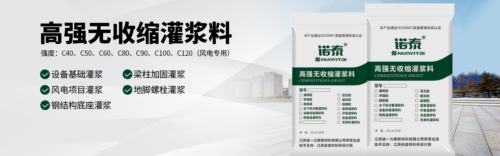 江西諾一力泰新材料有限公司位于江西宜春奉新縣,是專業從事灌漿料水泥路面修補砂漿、抗裂砂漿、防水砂漿、保溫砂漿隔聲砂漿、粘結砂漿等砂漿系列產品生產銷售的廠家。